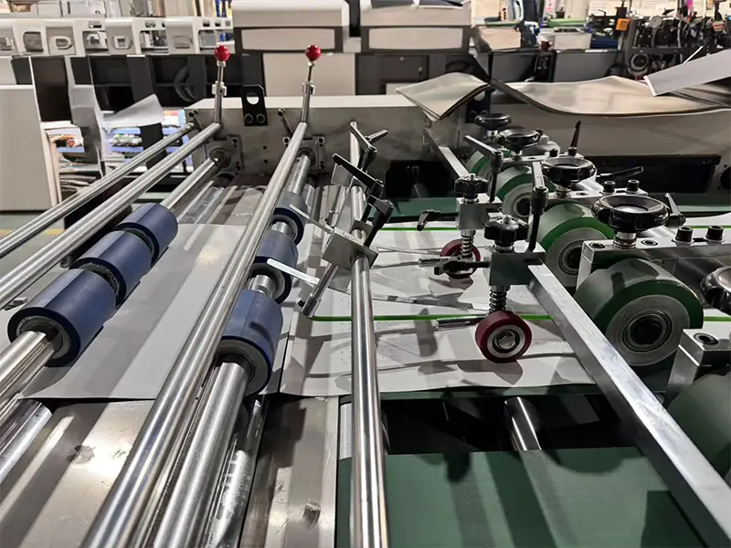 Vi tilbyder 5 rullevogne til hurtig adgang til den næste papirskæringsproces efter laminering og vikling (den første rulle skal tørres i en halv time efter færdiggørelsen, og den anden rulle kan lamineres på samme tid). Det er praktisk for arbejdere at indlæse halvfabrikata, hvilket sparer tid og arbejdskraft.